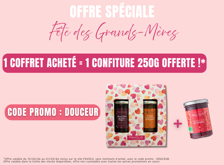 Présente dans les plus belles épiceries fines de France, FAVOLS vous invite à découvrir un univers unique de confitures et de préparations confectionnées avec le plus grand soin pour révéler toute la richesse des saveurs. Laissez-vous tenter par notre gamme et faites vivre à vos papilles une aventure gourmande incomparable.
