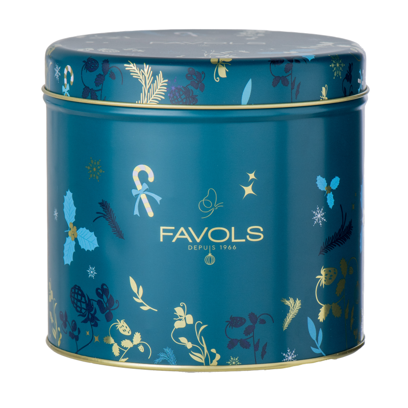 Gourmandise de Noël : pomme (60%), sucre, rhum, raisins secs (1,3%), écorces d'oranges confites (1,3%) (écorces d'orange, sirop glucose-fructose, acidifiant : acide citrique), amandes (0,6%), jus concentré de citron, gélifiant : pectine de fruit, cannelle. Préparée avec 60 g de fruit pour 100 g Teneur totale en sucres : 55 g pour 100 g